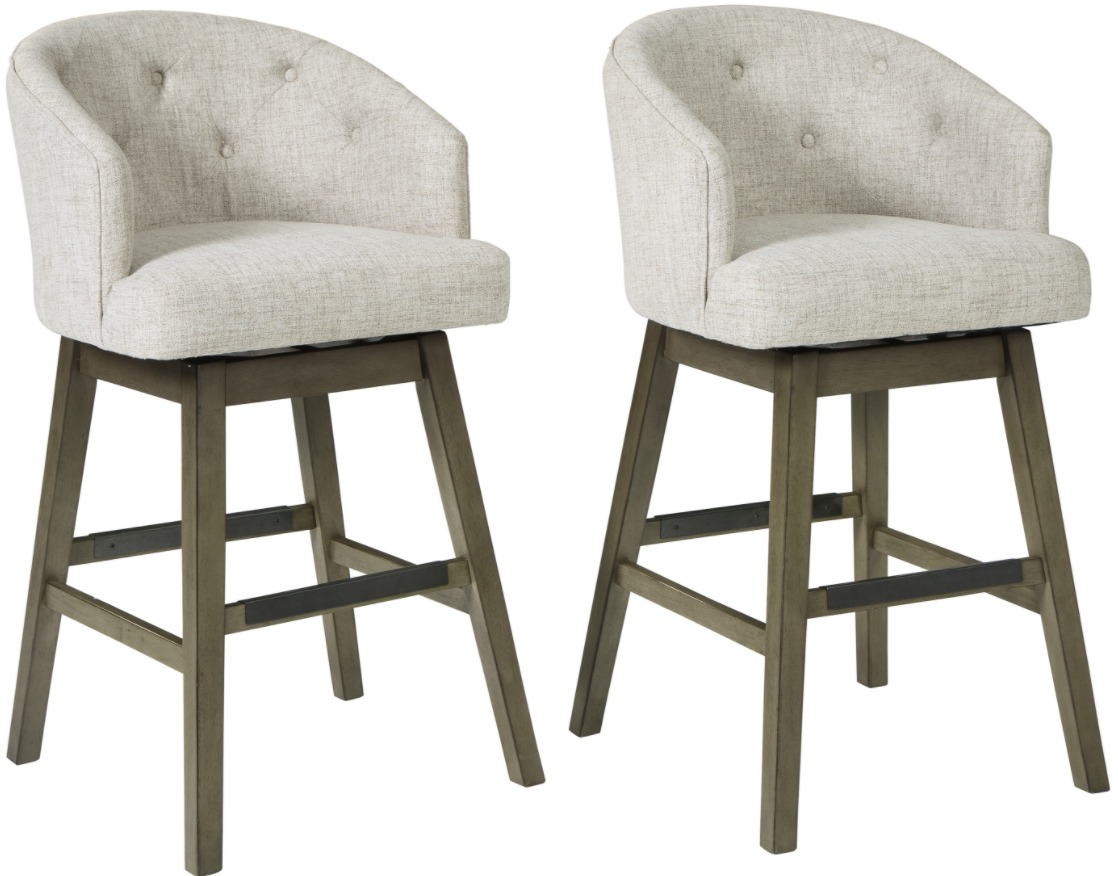 This bar stool arrives at the table with full scale comfort. Classic tufting dresses up the beautifully curved back. Adding to the allure, textured upholstery and 180-degree swivel are the very definition of elegance.Read More