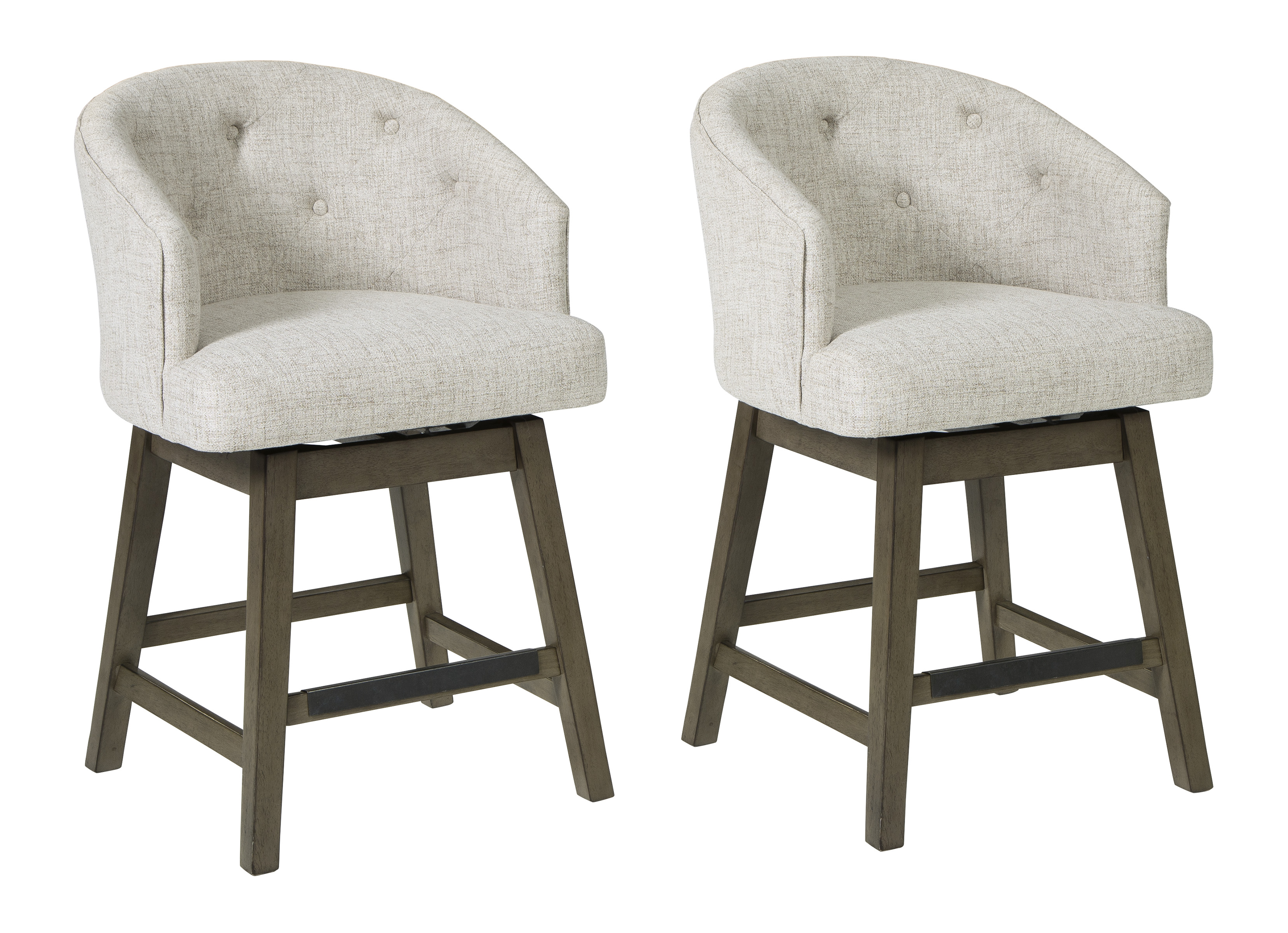 This bar stool arrives at the table with full scale comfort. Classic tufting dresses up the beautifully curved back. Adding to the allure, textured upholstery and 180-degree swivel are the very definition of elegance.Read More