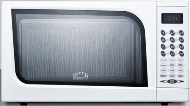 SUMMIT's SM901WH is a fully featured microwave designed for valued convenience in any home setting. Soft-touch electronic controls make cooking easy to manage, with variable power settings and a convenient one-touch auto cook option. An audible signal goes off at the end of each cycle and a child lock is included for maximum safety. A digital clock and timer are standard on this mid-sized model. The SM901WH has a complete white exterior, with a matching white handle to complete a classic look for your kitchen. Please note that door style and touchpad may vary slightly from pictured unit.