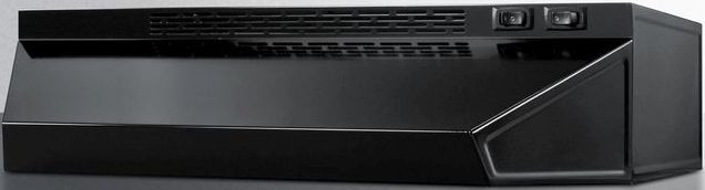 SUMMIT is one of the market's leading suppliers of quality range hoods, with solid construction and a wide selection of choices for every kitchen. The H1600 series features our most versatile convertible range hoods that can be used with top or rear venting and easily converted into non-vented (recirculating) mode. These hoods offer the features all customers want, including a two-speed fan, switchable light, and aluminum-charcoal filter. The H1618B is an 18 inch wide range hood made in a black finish. Additional units are available in stainless steel, white, and bisque and come in 20, 24, 30, and 36 inch widths to match most ranges. All SUMMIT range and shell hoods are made in the U.S.A.