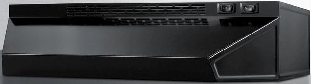 SUMMIT is one of the market's leading suppliers of quality range hoods, with solid construction and a wide selection of choices for every kitchen. The H1700 series features our best selling range hoods, with ready-to-install designs in ductless (recirculating) style. These hoods offer the features all customers want, including a two-speed fan, switchable light, and aluminum-charcoal filter. The H1720B is an 20 inch wide range hood with a black finish. Additional units are available in stainless steel and white and come in 24, 30, and 36 inch widths to match most ranges. All H1700 SUMMIT range hoods are made in the U.S.A.