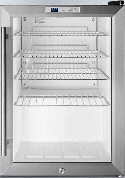 Fully featured for proper storage, the SCR312LCSSPUB includes a wide range digital thermostat that can accommodate the warmer temperatures generally kept for storing imported ales and porters (temperature range: 40ºF to 72ºF). The external temperature readout and easy touch controls make temperature management simple and precise, eliminating the need to open the door for any adjustments. An energy efficient LED light illuminates the interior and adjustable chrome shelves add a professional look.