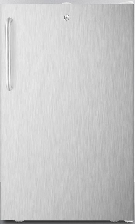 Accucold by Summit Appliance offers a wide range of counter height all-refrigerators for general purpose storage. The commercially listed FF511L7 Series features high performing 20" wide all-refrigerators designed for freestanding use in commercial applications.The ETL-S listed FF511L7SSTBADA features a full 4.1 cu.ft. capacity. It has a white cabinet and 304 grade stainless steel wrapped door, with a curved towel bar handle in bushed stainless steel. A factory installed lock is located at the top of the door for convenient security.Inside, this auto defrost refrigerator includes three adjustable wire shelves. A bottom crisper drawer offers added storage options. Additional features include an adjustable thermostat and a switchable interior light.At just 20" wide, the ADA compliant FF511L7SSTBADA is ideal for any space in need of quality cooling and can be perfectly matched with our FS407L7SSTBADA all-freezer. This model is designed for freestanding commercial use. For a built-in version of this model, see the FF511LBI7SSTBADA.