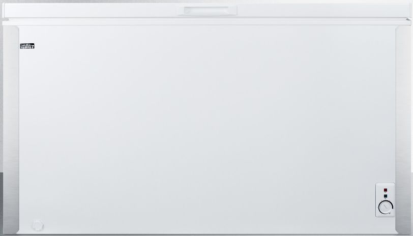 SUMMIT COMMERCIAL offers a quality selection of manual defrost chest freezers designed for a variety of storage applications in commercial establishments. The SCFM162 is UL-S listed to NSF-7 standards for commercial use. It comes in a white finish with stainless steel corner protectors factory installed on the exterior to ensure protection in high traffic areas. The hammered aluminum interior offers 14.1 cu.ft. of storage capacity, with two removable baskets for added convenience. This unit utilizes static manual defrost operation and includes a defrost drain. In addition to this unit, SUMMIT COMMERICIAL offers additional sizes of commercially listed manual defrost freezers, as well as frost-free choices and low temperature freezers all approved to NSF commercial standards.