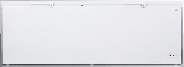 SUMMIT COMMERCIAL offers a quality selection of manual defrost chest freezers designed for a variety of storage applications in commercial establishments. The SCFM252W is UL-S listed to NSF-7 standards for commercial use. It comes in a white finish with stainless steel corner protectors factory installed on the exterior to ensure protection in high traffic areas. Sized at over 91" wide, the SCFM252W offers a generous 26.66 cu.ft. of storage capacity. This unit features two lift-up lids with counterbalanced hinges for safer loading. The lids include easy-to-grab handles and factory-installed keyed locks. Six small wheels allow you to reposition the freezer with ease. Inside, the SCFM252W features a hammered aluminum interior for lasting durability in commercial settings. We include two sliding wire baskets for easy storage. This unit utilizes static manual defrost cooling, with a defrost drain conveniently located in the front. The dial thermostat offers intuitive temperature management and a visual alarm lights up if the temperature rises above -11ºC. In addition to this unit, SUMMIT COMMERICAL offers additional sizes of commercially listed manual defrost freezers, as well as frost-free choices and low temperature freezers all approved to NSF commercial standards.