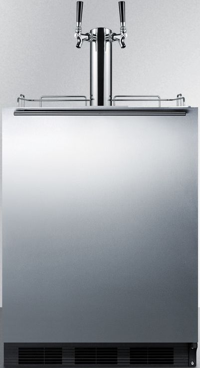Summit Commercial brings unique appliance choices to ADA compliant settings with a new line of commercial beer dispensers made in Europe. Sized at 32 inches high, the SBC58BBIADA is designed to fit under lower ADA compliant counters. The front-breathing design allows built-in installation, while the fully finished black cabinet also enables freestanding use. This unit features a user-reversible 304 grade stainless steel wrapped door complete with a stainless steel handle mounted horizontally for a modern look. We include a guard rail (ships uninstalled) and removable two-piece stainless steel drip tray for cleaner service. The SBC58BBIADA ships with a complete Sankey American dual tap kit complete with a draft tower, regulator, 5 lb. CO2 tank, and all the equipment you need to serve beer on tap. Inside, the SBC58BBIADA is designed to hold two 1/6 (sixtel) kegs or one tall quarter keg (note: interior does not accommodate a standard half barrel). Automatic defrost ensures easy user maintenance, with a seamless interior for easier cleaning. The stainless steel floor offers added durability when loading kegs. This unit includes an interior light with an on/off rocker switch and a dial thermostat for easy and intuitive temperature management. A CO2 tank bracket is located inside, allowing you to keep the tank inside and save on exterior depth. The SBC58BBIADA is ETL-S listed to NSF-7 commercial standards. Additional ADA compliant kegerator choices are available with panel-ready or glass doors. Browse our complete line for more choices.