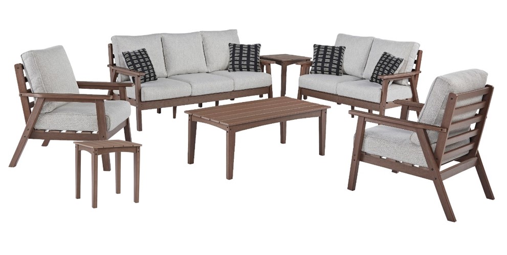 Includes - Sofa with Cushions, Loveseat with Cushions, Two Lounge Chairs With Cushions, Rectangular Cocktail Table and Two Square End Tables