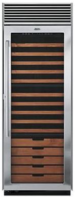 Viking® 30" Wine Cellar/ Clear Glass Door/ 150 full-size bottle/ Versatile shelving system stores standard/ magnum/ half-size bottles/ Interior Display Light/ Digital Exterior Display/ Right or left hinge/ Stainless SteelRead More