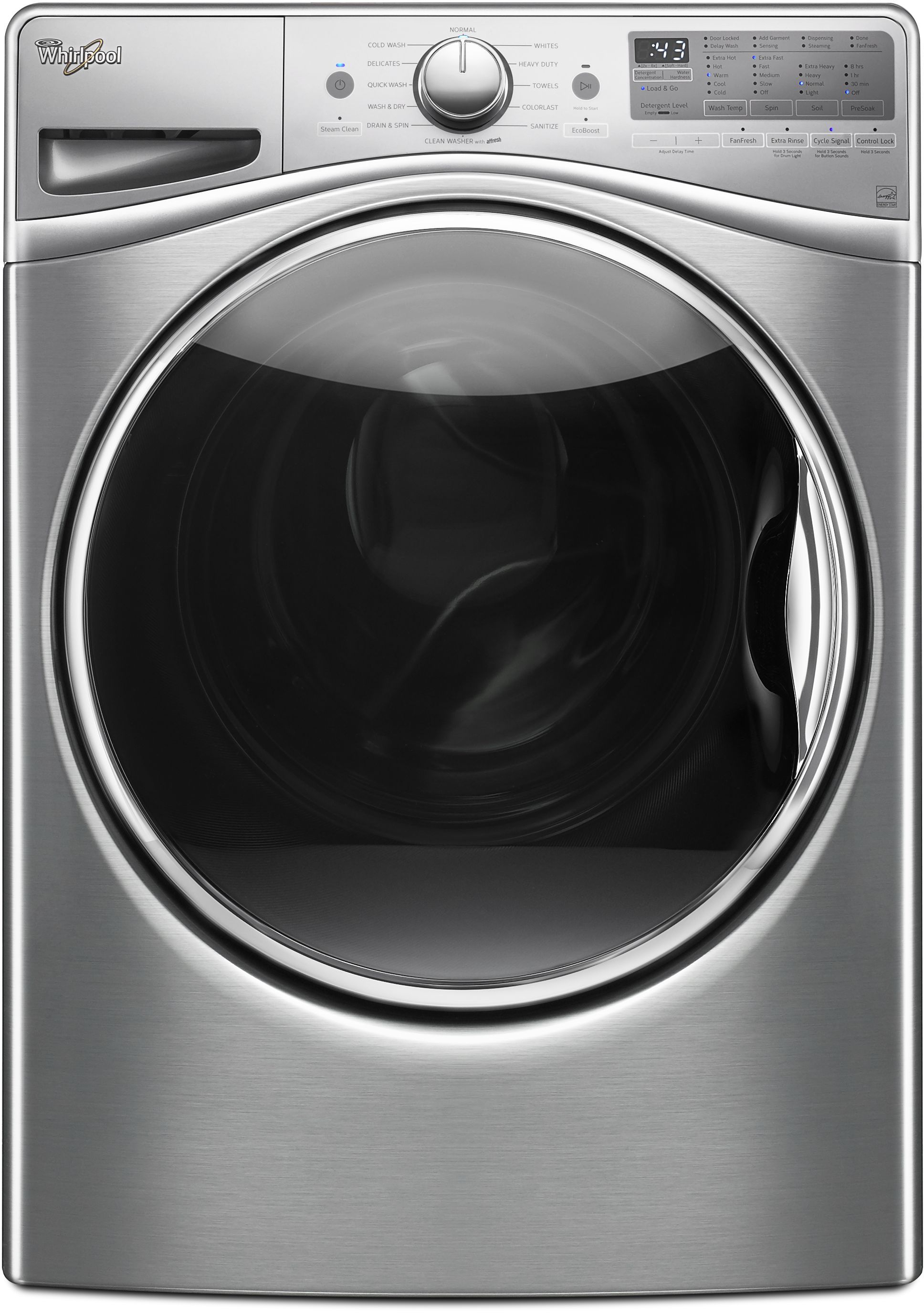 Whirlpool® Front Load Washer-Diamond Steel with 4.5 cu. ft. capacity, Load & Go™ bulk dispenser and ColorLast™ cycleRead More